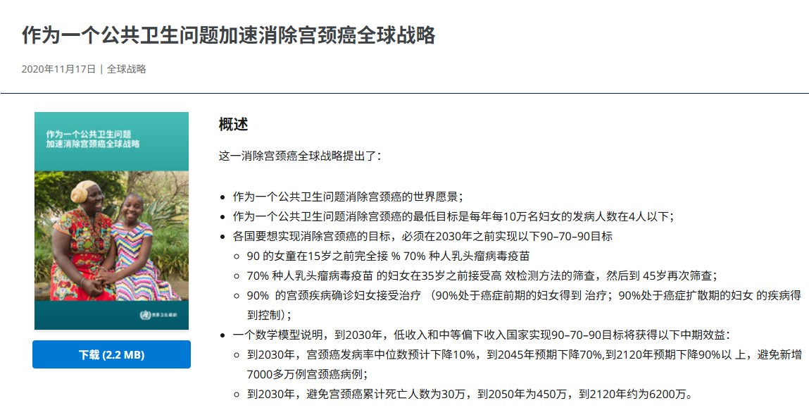 (?世界衛生組織將接種、篩查、治療作為加速消除宮頸癌全球戰略的核心標準)